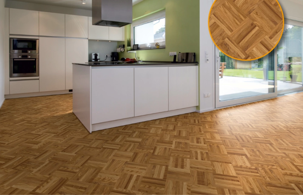 Mosaiikparkett vastupidav massiivpuidust põrandalahendus, mis sobib nii kodudesse kui ka suure koormusega ühiskondlikesse ruumidesse. Alusvõrgule kinnitatud parketilipid moodustavad mustriplokid, mis tagavad kiire ja mugava paigalduse. Mosaiikparkett on töötlemata kujul ja peale paigaldust ning lihvimist saate valida endale sobiva tooni ja viimistluse (lakk või õlivaha). Suureks eeliseks on aspekt, et põrandat saab korduvalt lihvida ja renoveerida kogu paksuse ulatuses. Korralise ja korrektse hooldusega tagate pikaajalisust ka ilma lihvimiseta.