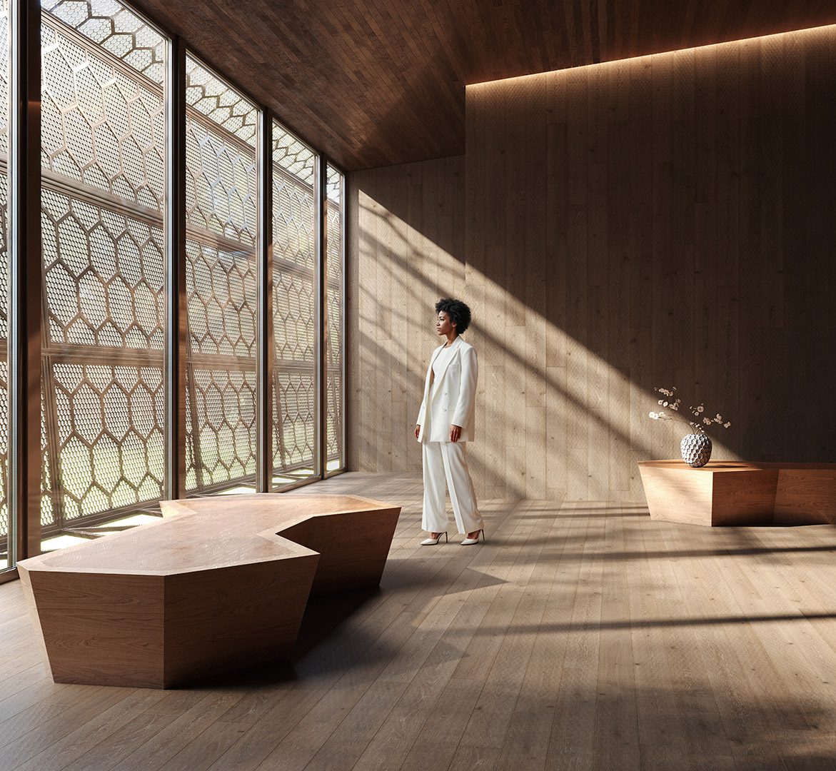 Hoolikalt kujundatud pinnad kutsuvad neid puudutama ja nendega suhestuma. Valgus mängib igal tekstuuril erinevalt, luues jalge all dünaamilise, taktiilse ja luksusliku kogemuse.