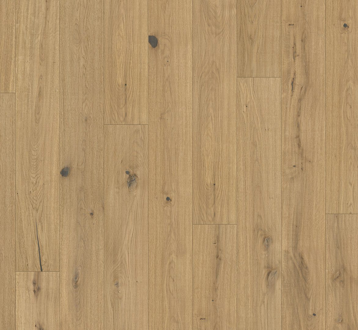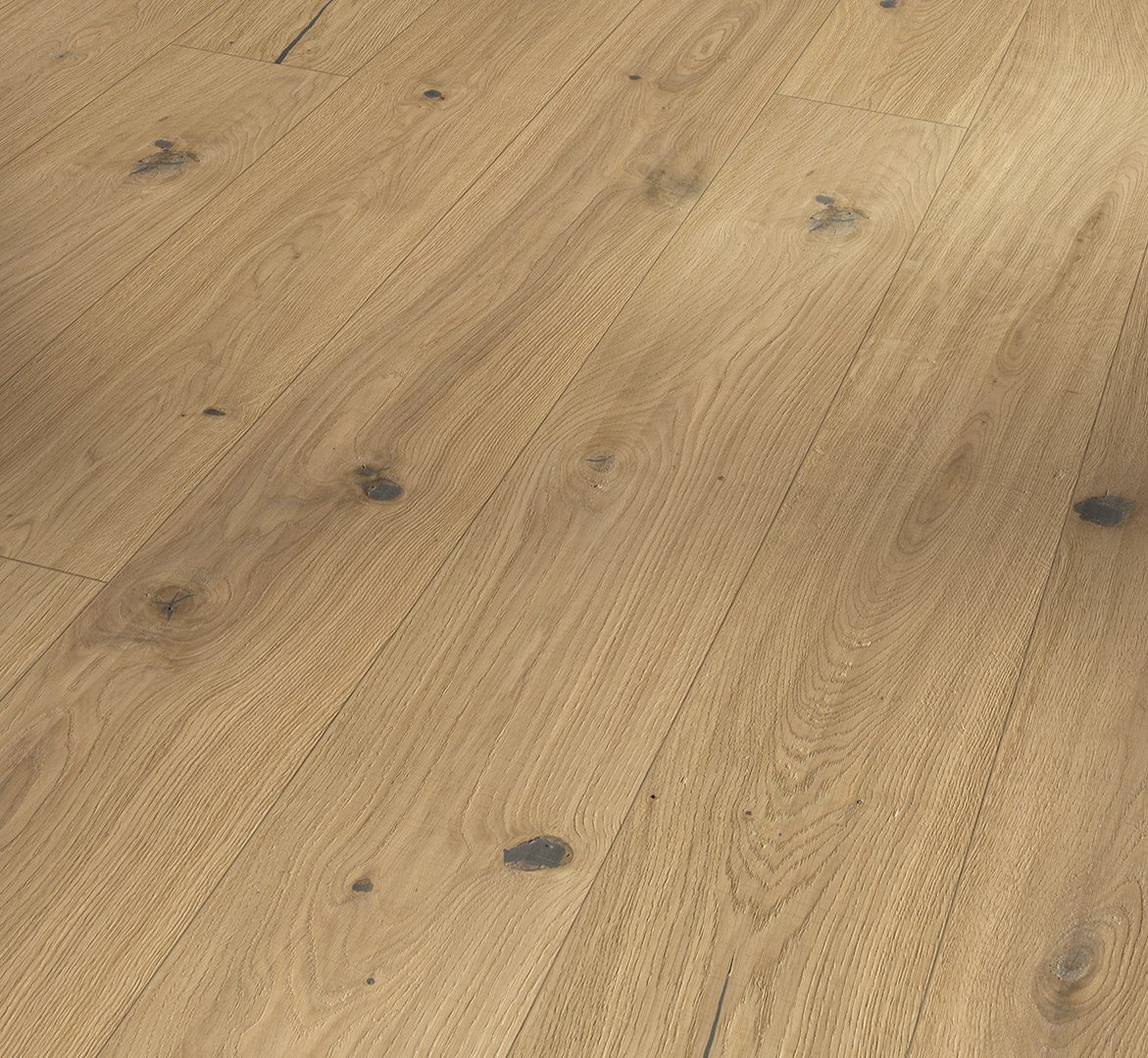 Tamm Savanna Limed on naturaalne tammepuidust põrand, mida iseloomustab rustikaalne ja elav puidusüü. Põrandal esinevad selgelt nähtavad oksakohad, süümustrid ning looduslikud toonierinevused, mis rõhutavad materjali loomulikku päritolu ja individuaalset ilmet.